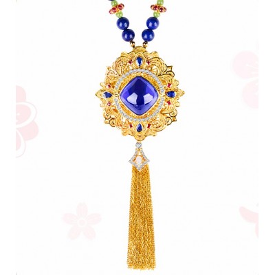 BOJEM/(宝姐)珠宝 【朝阳】5A级坦桑石花丝镶嵌项链(预定)