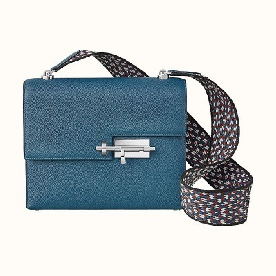 HERMES/爱马仕蓝色小牛皮翻盖锁代单肩包 H079088CKAF