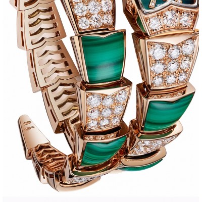 BVLGARI/宝格丽 Serpenti系列 女士蛇形玫瑰金明亮式切割钻石镶饰表壳孔雀石镶饰表带手表女表 102678